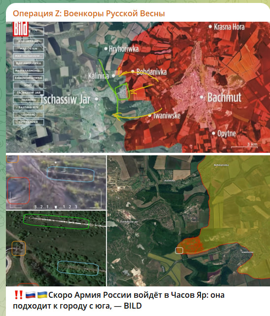 В то же время немецкий журналист аналитик Юлиан Рёпке в статье для издания BILD, сообщил о том, что армия Россия вскоре прорвёт оборону украинцев и войдёт в Часов Яр.