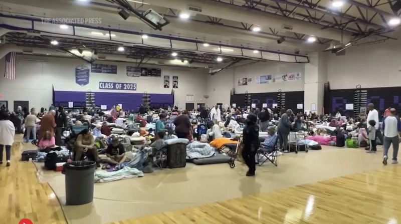 Жители укрылись в школе в Нью-Порт-Ричи, штат Флорида, когда на побережье обрушился ураган. Скриншот: apnews.com