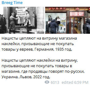 В Сети сразу напомнили, что подобная практика имела место в Германии в 1935 году. Только там наклеивали объявления с призывом не покупать товары у евреев.