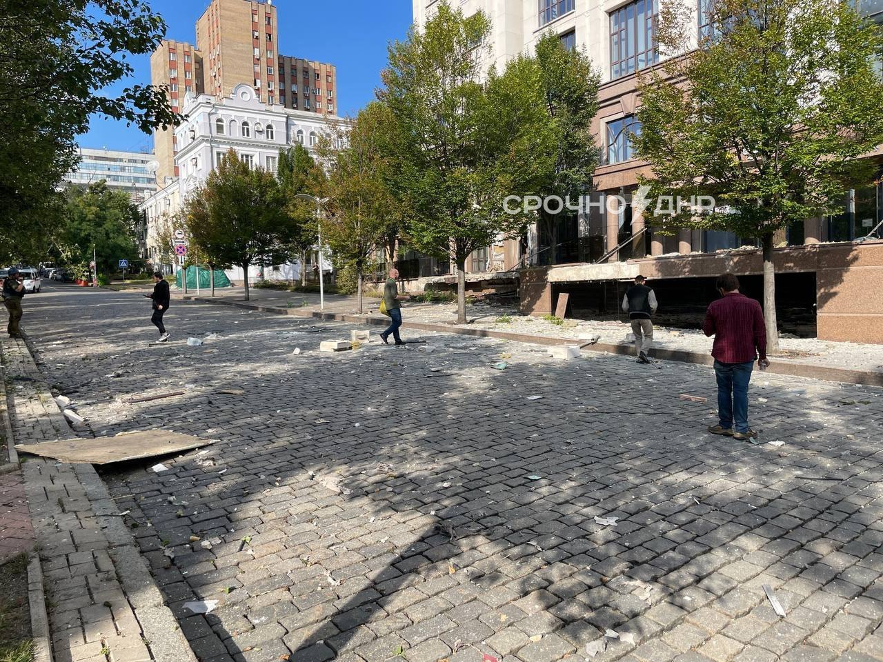 Удар по администрации главы ДНР в Донецке. В центре было громко. Судя по звуку, одну из ракет сбили, другая попала. О пострадавших пока ничего неизвестно,