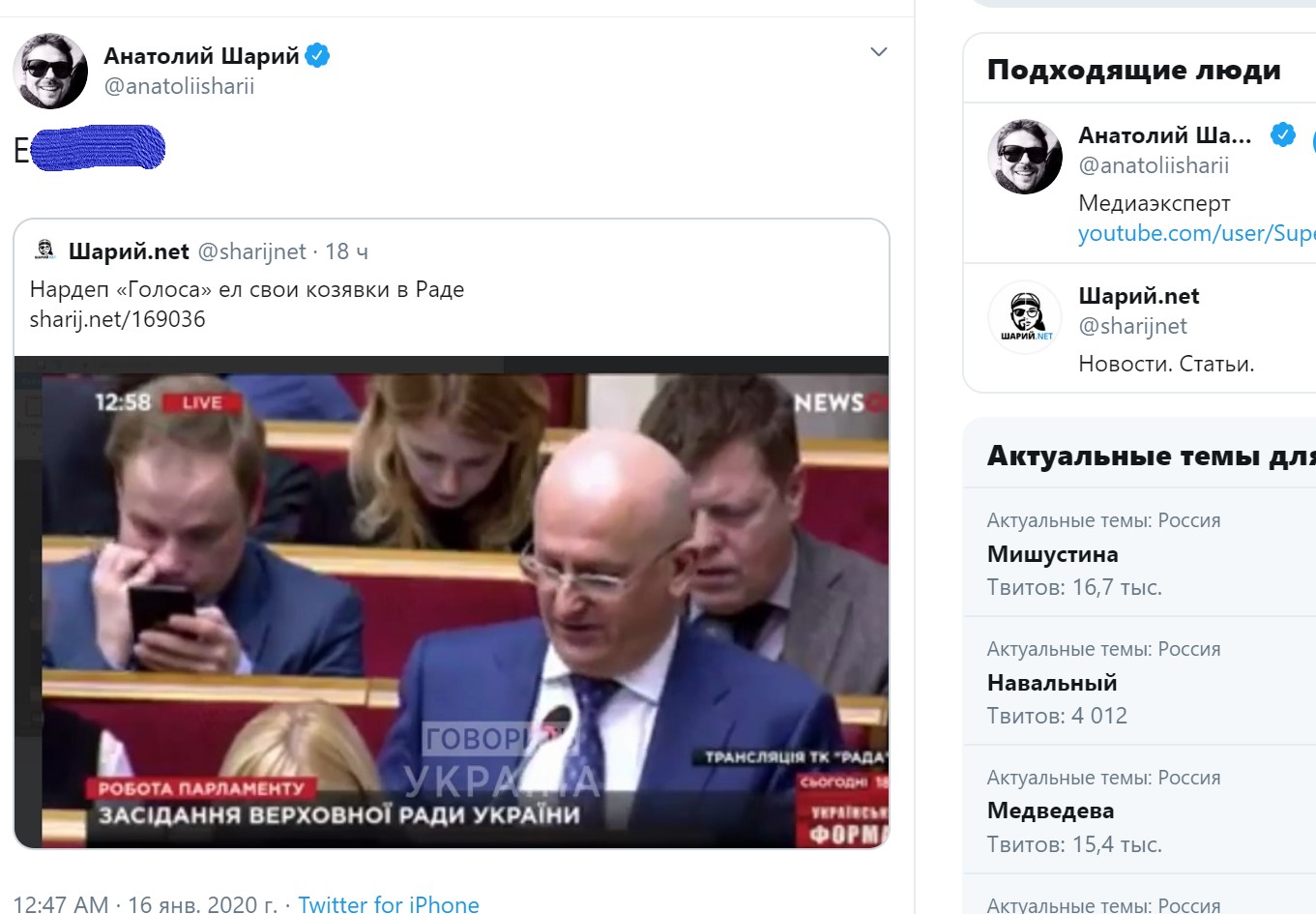 Впрочем, подписчики Шария выдвинули свою версию, почему нардеп мог так "зашквариться".