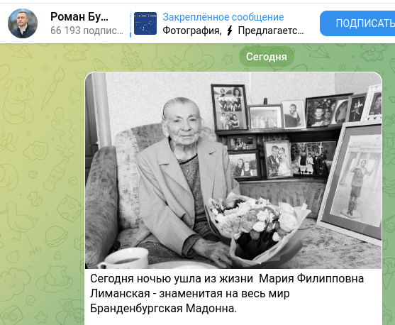Сегодня ночью ушла из жизни Мария Филипповна Лиманская - знаменитая на весь мир Бранденбургская Мадонна,