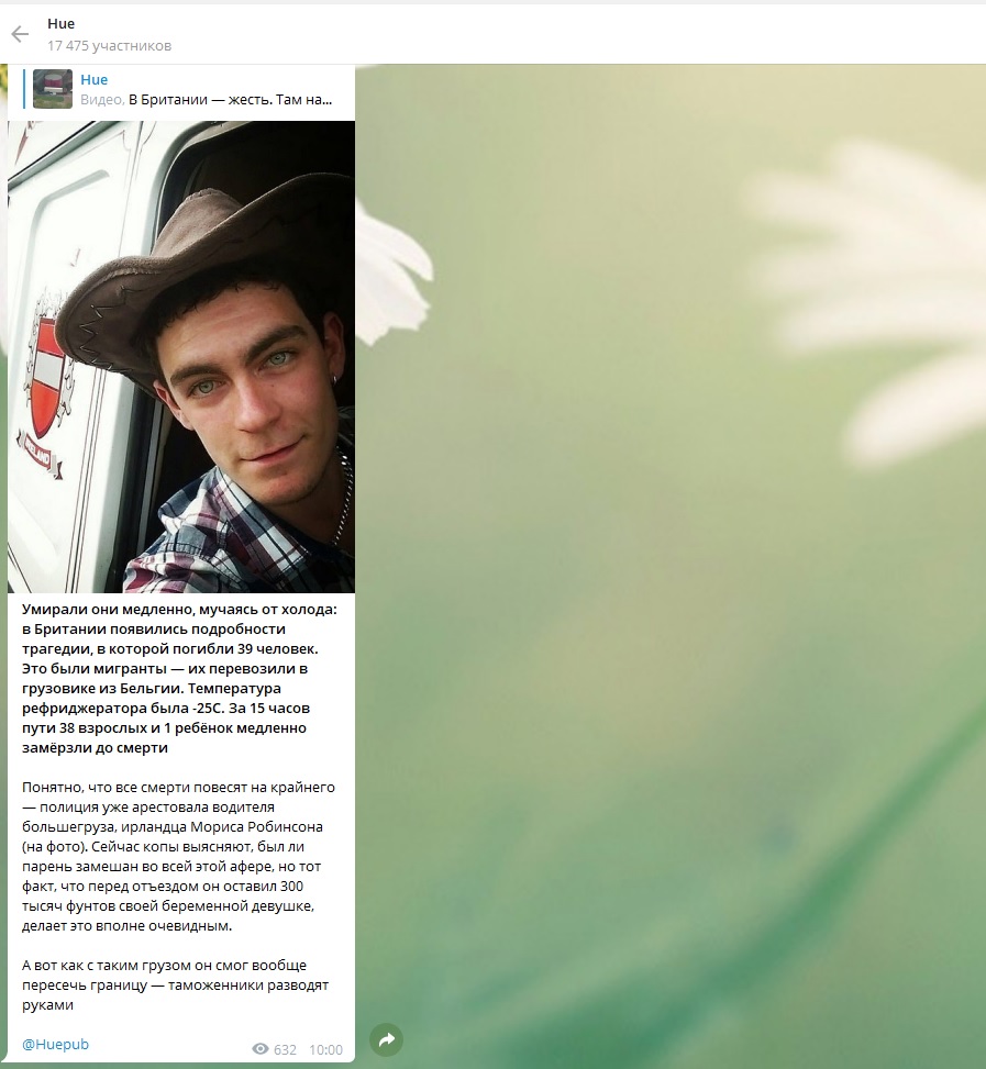 Теперь телеграм-канал Hue без ссылки на источник пишет, что мигранты "умирали медленно, мучаясь от холода". По всей видимости, людей везли из Бельгии.