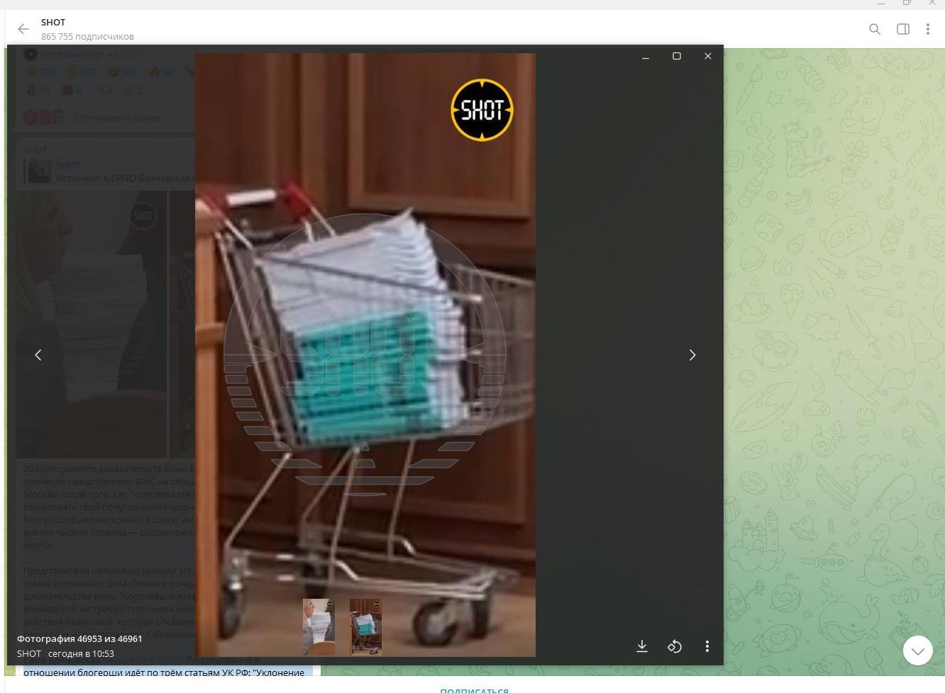 УГОЛОВНОЕ ДЕЛО ПРОТИВ БЛИНОВСКОЙ УЖЕ ПОРА ИЗМЕРЯТЬ НЕ В ТОМАХ, А В КИЛОГРАММАХ. ФОТО: СКРИНШОТ ТЕЛЕГРАМ-КАНАЛ SHOT