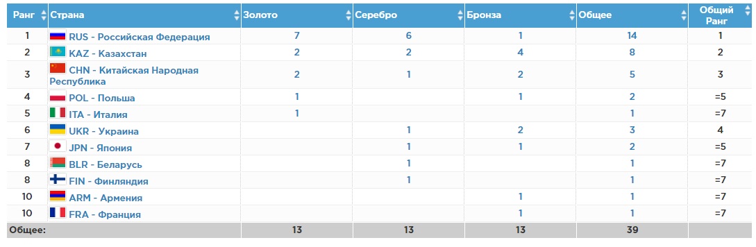 Универсиада-2017: Медальный зачет 31 января - Россия увеличивает преимущество