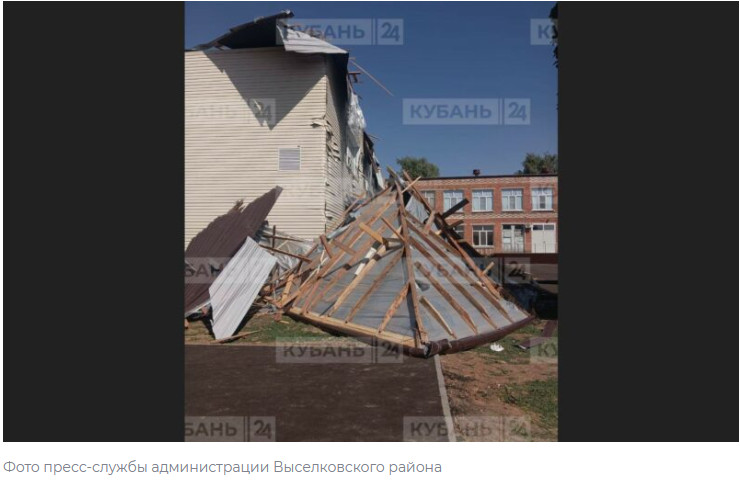 Ураганный ветер сорвал крышу со здания школы №3 в станице Березанской Выселковского района. Об этом сообщают местные СМИ со ссылкой на районные администрации и прокуратору.
