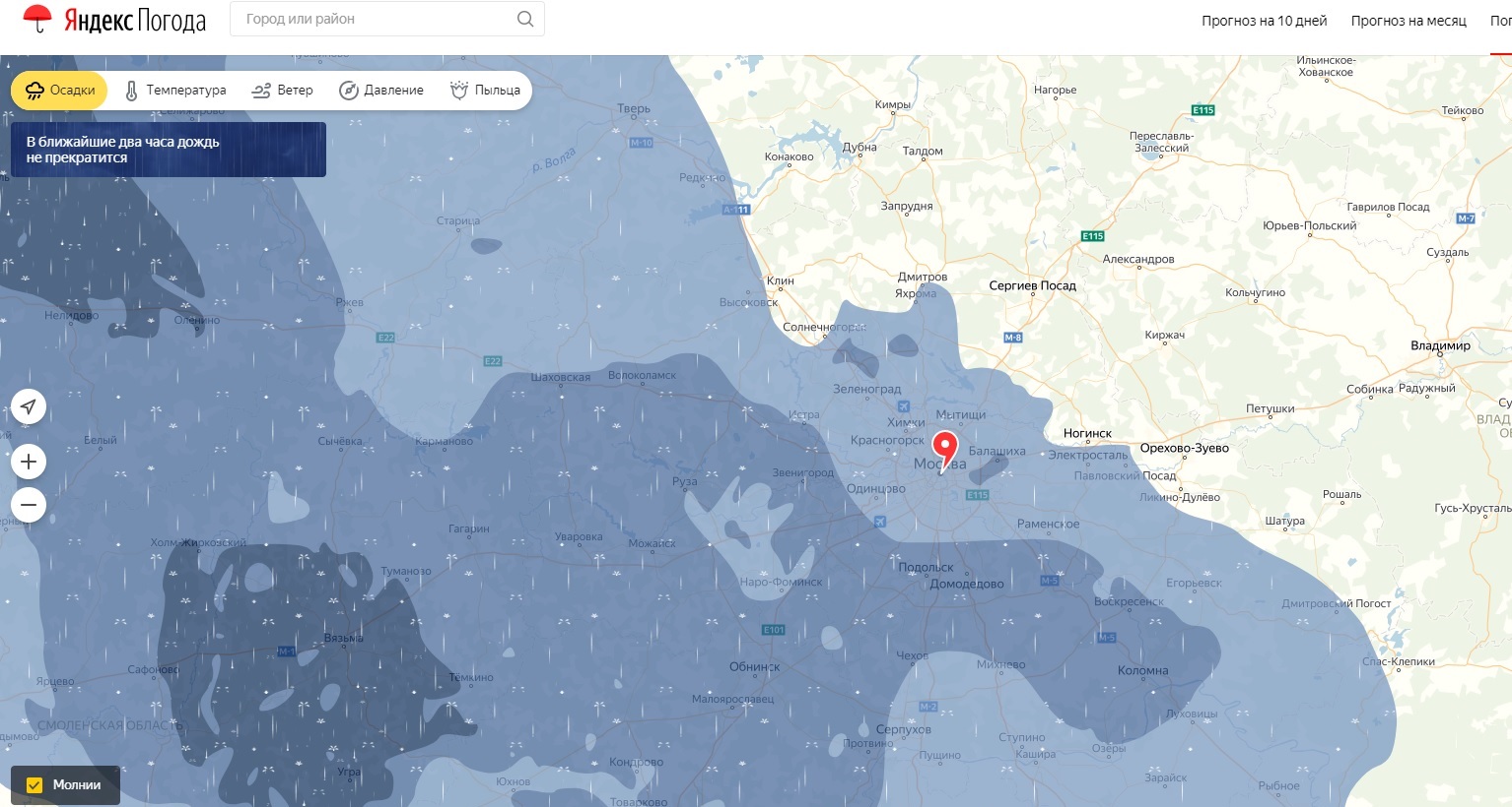 Фото: yandex.ru/pogoda/moscow/maps