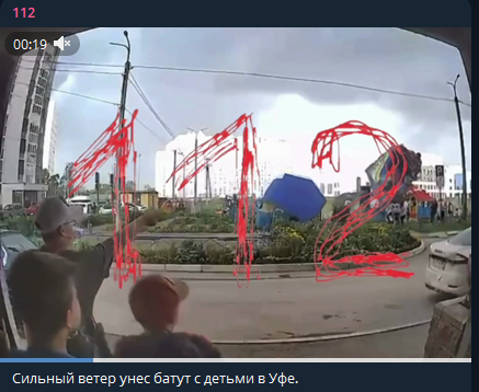 Мощный ветер в Уфе унёс батут с детьми: Кадры