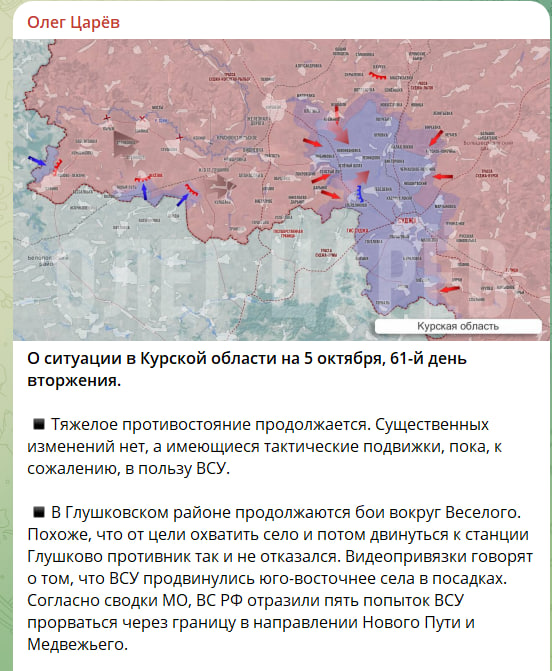 Тяжёлое противостояние на Курском фронте продолжается. Существенных изменений нет, а имеющиеся тактические подвижки, пока, к сожалению, в пользу ВСУ, сообщает политик Олег Царёв.