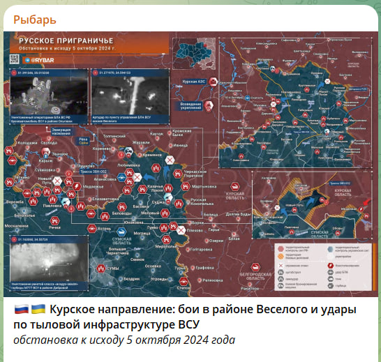 В Глушковском районе отмечены боестолкновения в районе Весёлого. Судя по появившимся в Сети кадрам, противнику удалось продвинуться в лесополосах к юго-востоку от села и подтянуть подразделения БЛА. Одно из них было "накрыто" огнём российской артиллерии. Вероятно, уже в скором времени ВСУ также предпримут атаки вдоль железной дороги, чтобы обезопасить правый фланг своей группировки, постепенно охватывающей Весёлое.