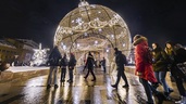 Без этого тоннеля уже сложно представить себе предновогодний Тверской бульвар. Он настоящий рекордсмен среди столичных праздничных "коридоров" с его длиной в 200 метров. Хотя есть тут и хитрость - тоннель на самом деле состоит из нескольких участков, с небольшим разрывом идущих друг за другом вдоль прогулочной дорожки. По стилю они почти идентичны - у навесов схожая цветовая гамма в оттенках северного сияния, только где-то их стены украшены новогодними шариками, а где-то - светящимися снежинками.
