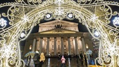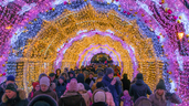 80-метровый коридор можно найти у подножия монумента Победы на Поклонной горе. Это не просто светящийся тоннель, а настоящий аттракцион - он и музыку играет, и сам под неё "танцует". Принцип такой: на опорах тоннеля установлены динамики, проигрывающие как традиционные новогодние песни и их ремиксы, так и, например, отрывки произведений Чайковского. В унисон с мелодией мигают и переливаются светодиодные нити, служащие навесом тоннеля, и украшающие его звёздочки.