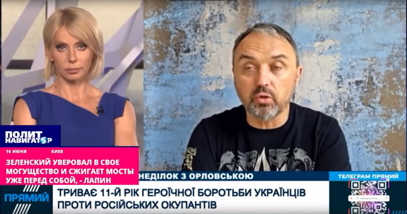 По словам, айдаровца* всё это "выглядит, наверное, не по понятиям". О каких понятиях идет речь - криминальных или каких-то других - спикер не уточнил. Символично, что разговор прошел под украинскими пропагандистскими титрами: "Продолжается 11-й год героической борьбы Украины против российских оккупантов".