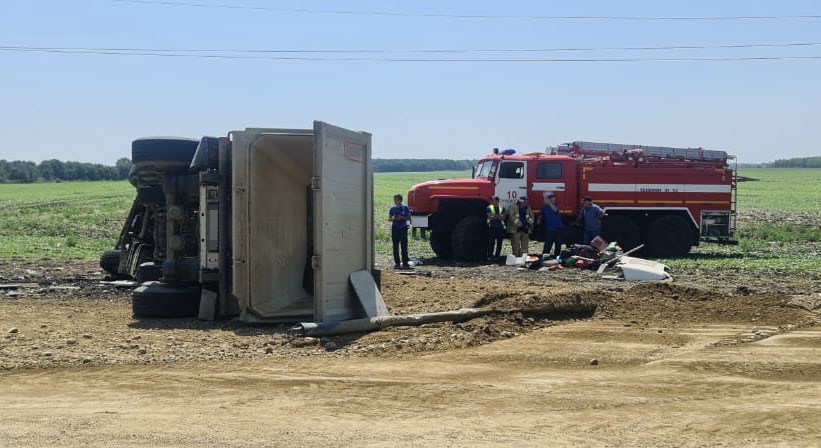 По предварительным данным, фура с полуприцепом вылетела на встречку днём 31 июля и снесла Lada Granta. От удара грузовик, перевозивший песок, перевернулся прямо на дороге. Легковушка оказалась под его кабиной.