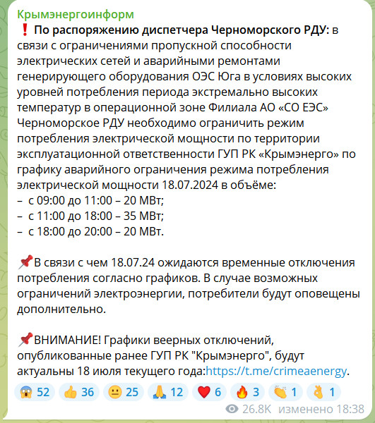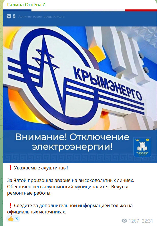 ФОТО: СКРИНШОТ ТГ-КАНАЛА T.ME/CRIMEAENERGY