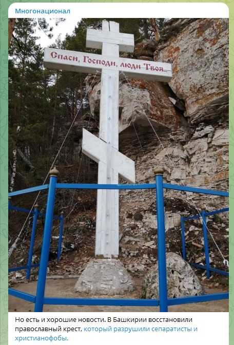 В Башкирии восстановили православный крест, который разрушили сепаратисты. Местные чиновники пообещали узаконить религиозный символ и защитить его от вандалов фотоловушками.