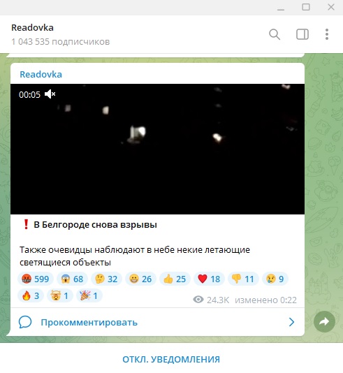 Фото: скриншот Telegram-канала Readovka