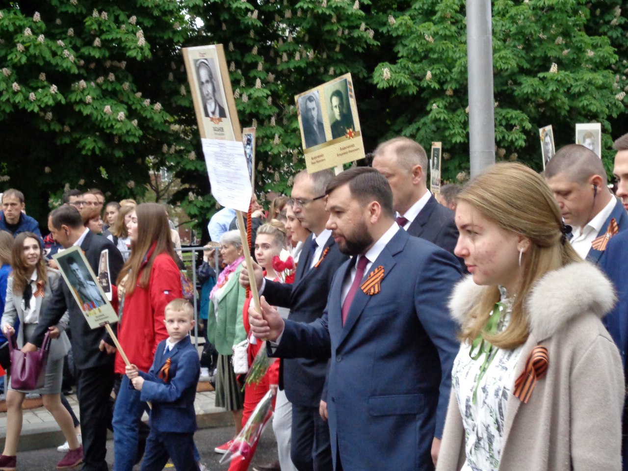 Колонну "Бессмертного полка", которая прошла по Донецку 9 мая, возглавили глава ДНР Денис Пушилин и спикер Народного Совета ДНР Владимир Бидёвка, передаёт корреспондент Царьграда.