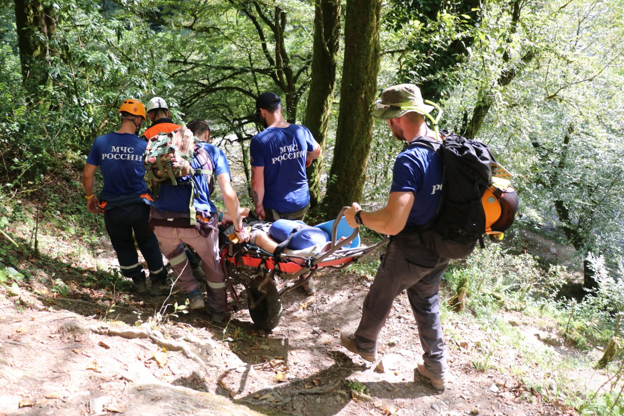 Спасатели и медик в составе 9 человек выехали за травмированным отдыхающим на автомобилях высокой проходимости. Пройдя четыре километра вглубь горного маршрута, спасатели нашли молодого человека. На носилках его вынесли из леса к служебному транспорту, затем на автомобильной дороге уже передали его врачам "неотложки".