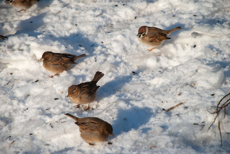 "Сибирь. Много синичек, дятлов, щеглов, снегирей, воробьёв в самом деле маловато стало".