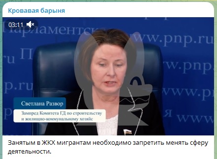 Занятым в ЖКХ мигрантам хотят запретить менять сферу деятельности, пишет Ксения Собчак в своём Telegram-канале "Кровавая барыня". Она ссылается на заявление зампреда комитета Госдумы по строительству и ЖКХ Светлану Разворотневу. Однако, если послушать, что на самом деле говорит парламентарий, вырисовывается совершенно иная картина.