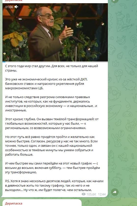 Напомним, ранее крупный бизнесмен Олег Дерипаска предложил перевести трудовой народ в России на шестидневную рабочую неделю с 12-часовыми сменами. Так олигарх намерен справляться с "тяжёлой трансформацией" экономики.