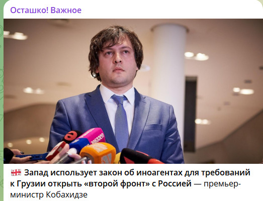 Премьер-министр Грузии Ираклий Кобахидзе заявил, что принятый парламентом закон "О прозрачности иностранного влияния", которому во всём западном мире уделили столько внимания, является лишь поводом для требований к Грузии открыть "второй фронт" с Россией.