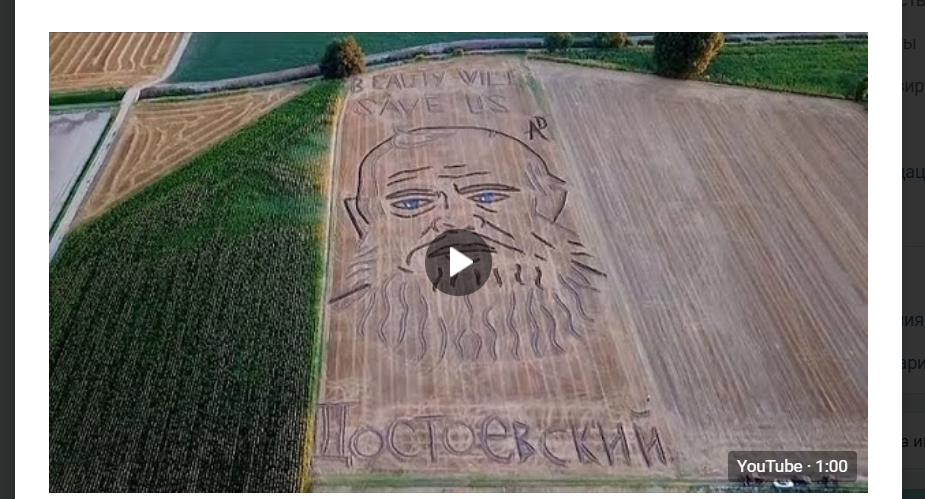 Впрочем, загадка вскоре разрешилась: оказывается, гигантское изображение создал на поле известный художник Дарио Гамбарин. Он решил почтить таким образом память великого русского писателя Фёдора Достоевского, со дня рождения которого в ноябре исполняется 200 лет.