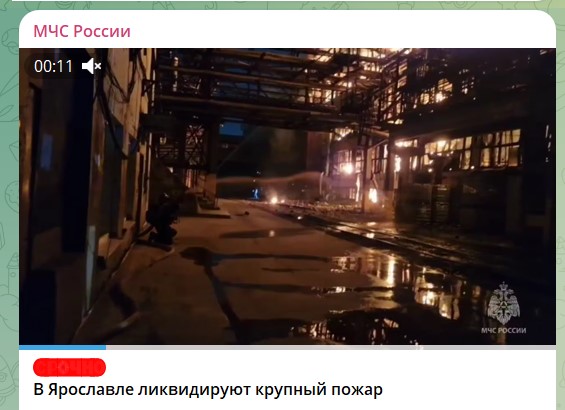 В Сети добавляют, что столб дыма от пожара виден за несколько километров. А также уточняют, что горит здание завода Ярославской лакокрасочной компании.