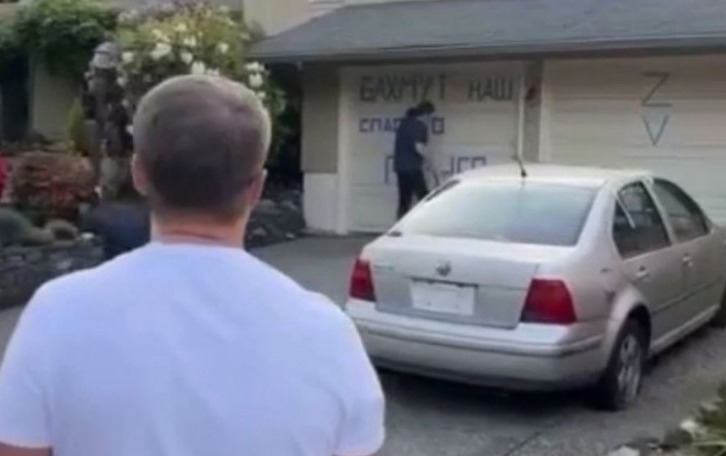 В Канаде мужчины-украинцы устроили истерику из-за надписи русской фрау на гараже "Бахмут наш!"