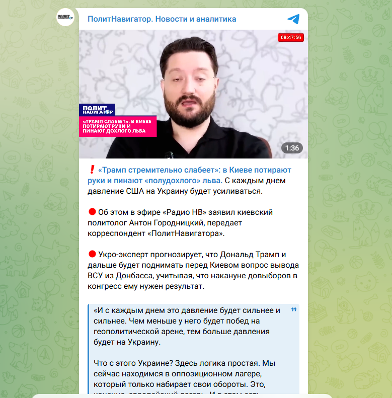 Так что, по мнению Городницкого, Штаты будут ежедневно наращивать давление на Украину, требуя исполнять свои условия. И чем хуже дела у Трампа на мировой политической арене, тем мощнее будет это давление.