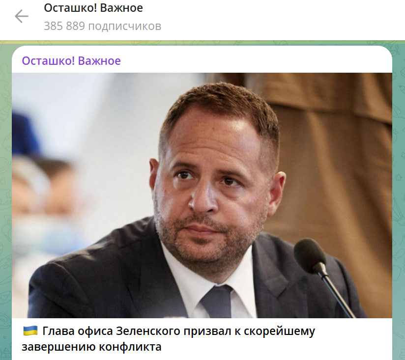 СКРИНШОТ: "ОСТАШКО! ВАЖНОЕ"/ТЕЛЕГРАМ