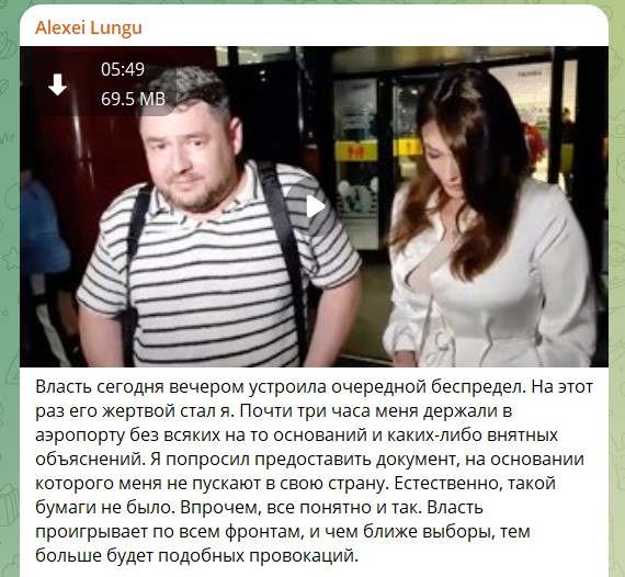Лидер оппозиционной молдавской партии "Шанс" Алексея Лунгу задержали в аэропорту Кишинёва. Претензии сотрудников аэропорта касались запрещённых предметов.