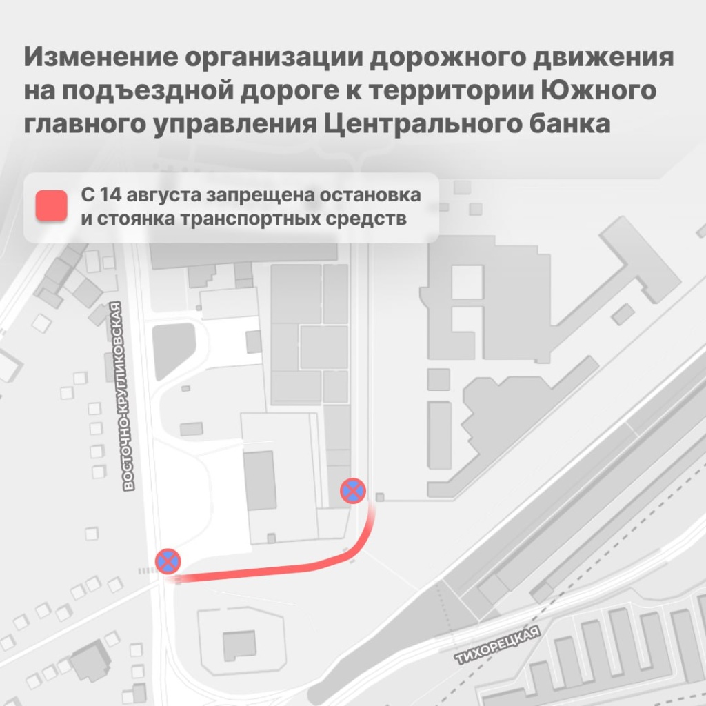 В Краснодаре с 14 августа парковать автомобили на улице Тихорецкой, 81 будет запрещено. Уточняется, что данный запрет затронет весь участок, ведущий к Южному главному управлению ЦБ РФ. Об этом сообщили в пресс-службе мэрии Краснодара.