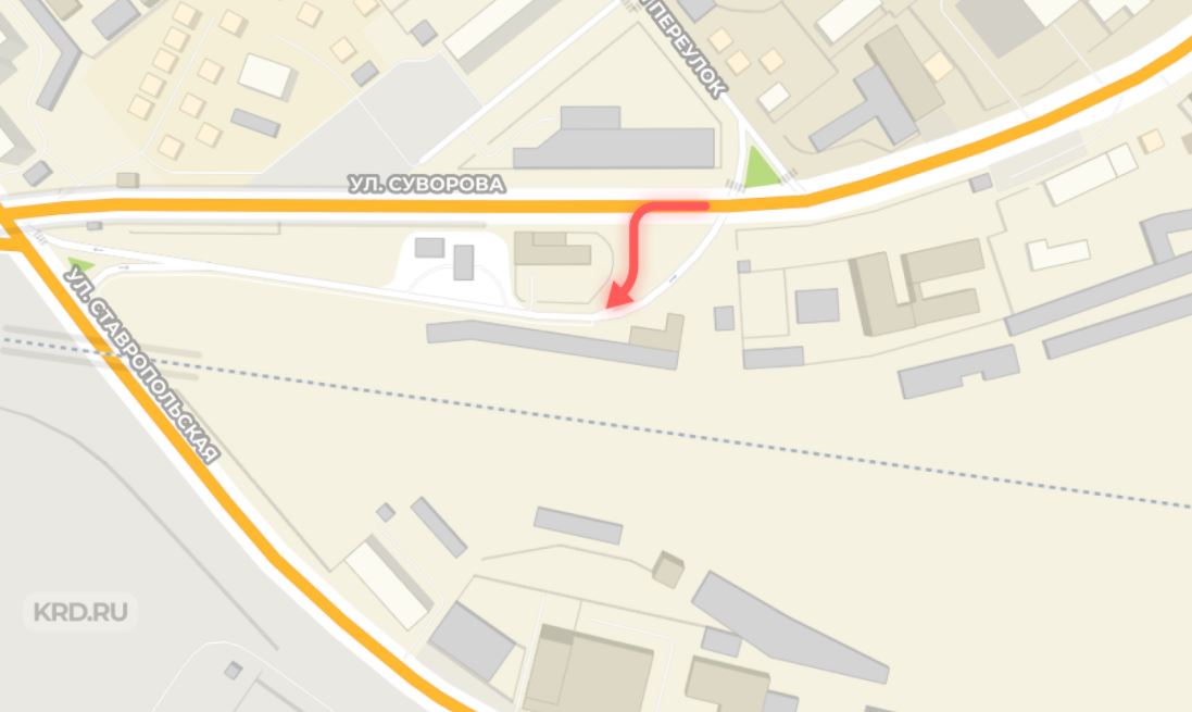 В Краснодаре закроют левый поворот на участке улицы Суворова в районе путепровода