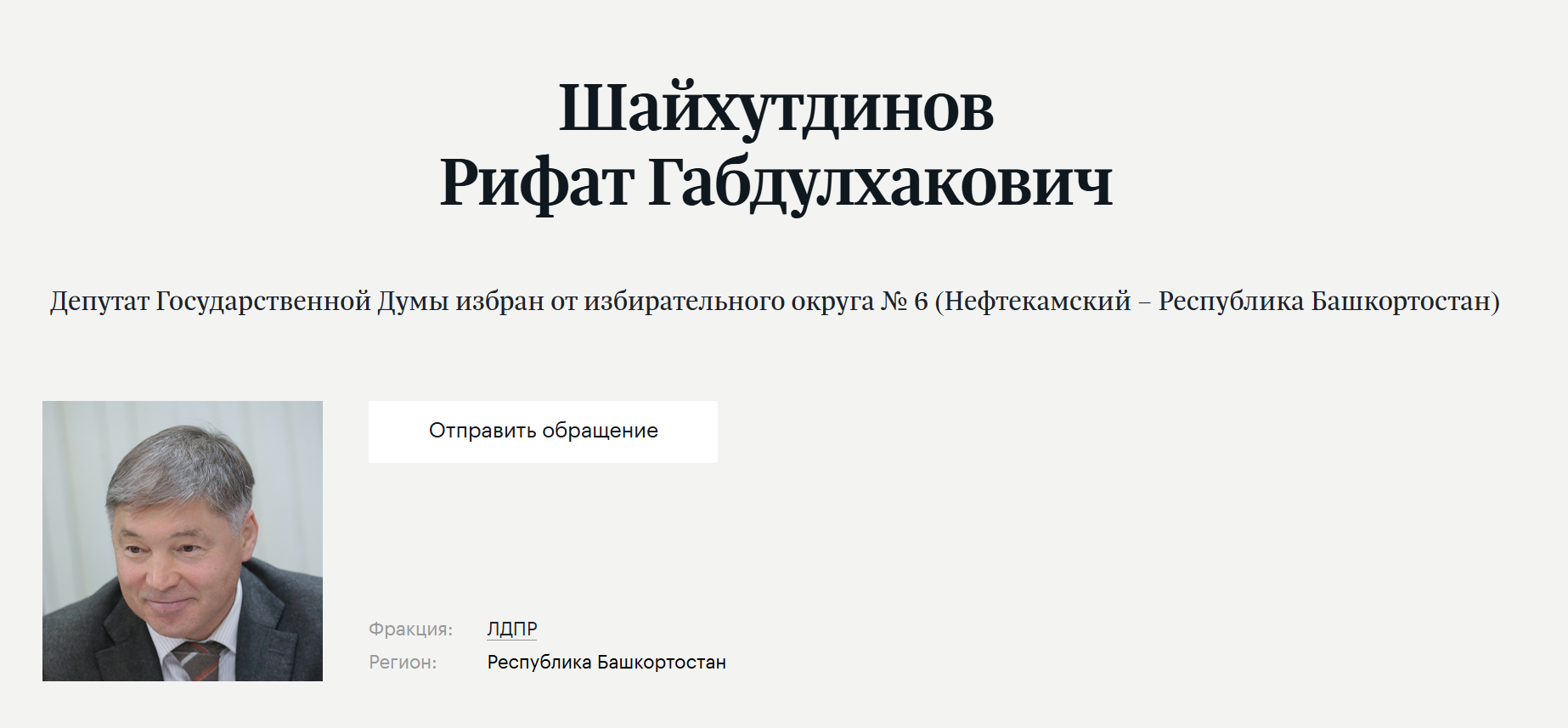 Стоит отметить, что имя Шайхутдинова присутствует на официальном сайте Госдумы в списке депутатов текущего Восьмого созыва. И там он упоминается как представитель партии ЛДПР.