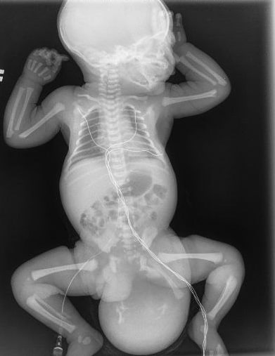 Мальчик весом 3230 граммов родился после кесарева сечения. Вес тератомы составил 650 граммов, то есть треть веса новорожденного. Образование прилегало к прямой кишке и сосудисто-нервному пучку маленького пациента. Вся анатомия ягодичной области была нарушена. Врачам пришлось по миллиметру выделять опухоль, ошибка могла привести к повреждению целостности кишки.