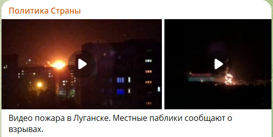 Видео пожара опубликовали и проукраинские телеграм-каналы. Как пишет "Политика страны", в Луганске горит нефтебаза.