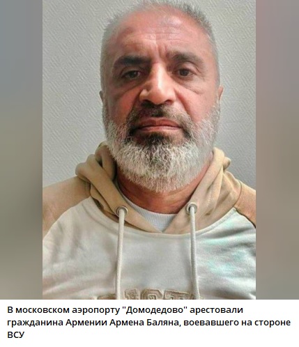 Речь идёт про наёмника по имени Армен Балян. В ноябре 2022 года он прибыл на Украину через Молдавию, чтобы вступить в ряды ВСУ и убивать русских за деньги. До декабря 2023 года наёмник участвовал в боях на территории ДНР и ЛНР, а также в Херсонской области.