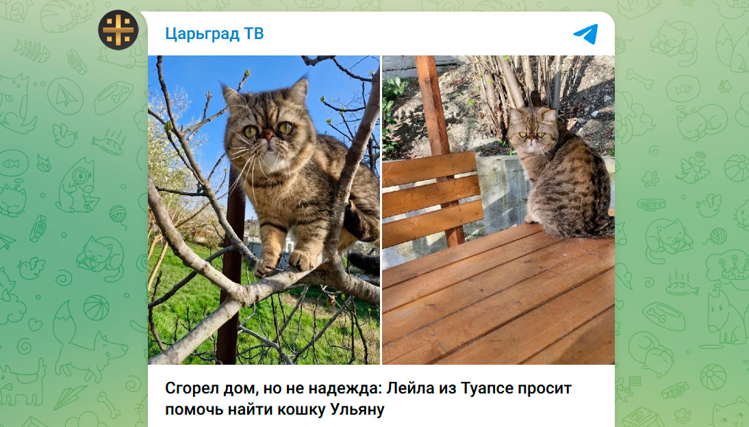 Люди звонят, приходят. Знакомые и незнакомые. Спрашивают, чем помочь. Туапсинка потеряла всё – как выбежала в халате, так и осталась. Окружающие говорят: "Ты в рубашке родилась". А она всё ищет свою кошку Ульяну. Когда-то Лейла специально ездила за этой кошкой породы экзот в соседний город. Есть шанс, что любимица смогла выбраться, ведь гулять на улице для неё не в новинку, а двери были открыты.