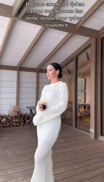 На кадрах Брутян запечатлена на крыльце с кружкой кофе в руках. На ней элегантный белоснежный вязаный костюм. Короткий свитер не скрывает живота девушки, который показался её подписчикам заметно округлившимся.