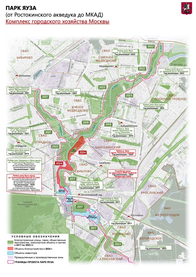 В течение 2024 года будут завершены основные работы по созданию парка "Яуза", рассказал мэр Москвы Сергей Собянин. По мере реализации проекта "Яуза" станет уникальным рекреационным пространством, которое раскинется от МКАДа до Ростокинского акведука.