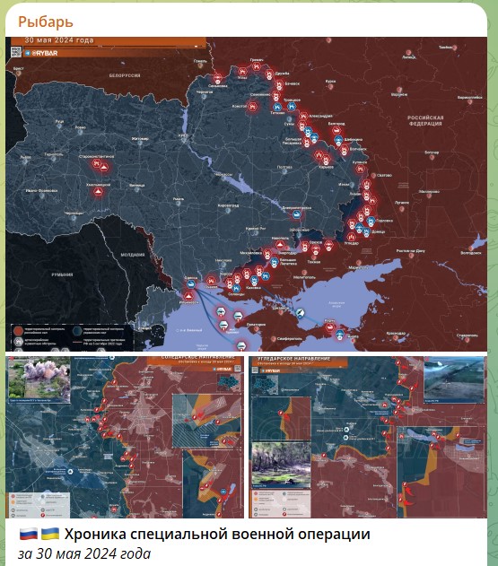 Тем временем из-за оттягивания Киевом резервов на Харьковское направление оборона ВСУ начала продавливаться на других участках фронта. Так, активно идёт наступление на Авдеевском направлении, вокруг Очеретино.
