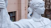 В Москве завершилась реставрация скульптур "Промышленность" и "Сельское хозяйство", расположенных по адресу: Подколокольный переулок, дом 16/2, строение 1.