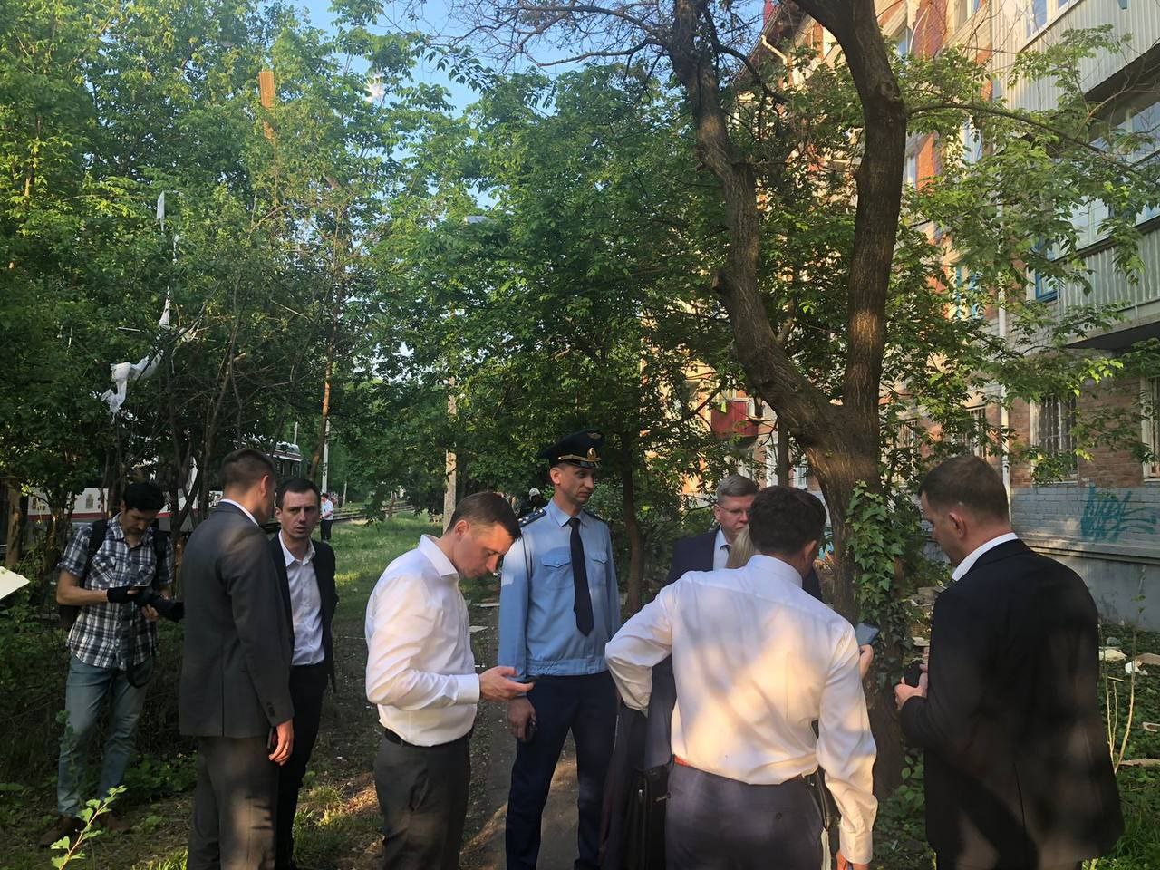 На улице Клинической работают сотрудники МЧС, аварийные бригады Краснодаргоргаза, глава Центрального округа Елена Малова и начальник управления гражданской защиты Виталий Казликин.