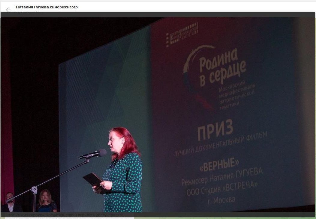 Фильм «ВЕРНЫЕ» получил главный приз на фестивале "Родина в сердце". Скриншот: телеграм-канал "Наталия Гугуева кинорежиссёр"