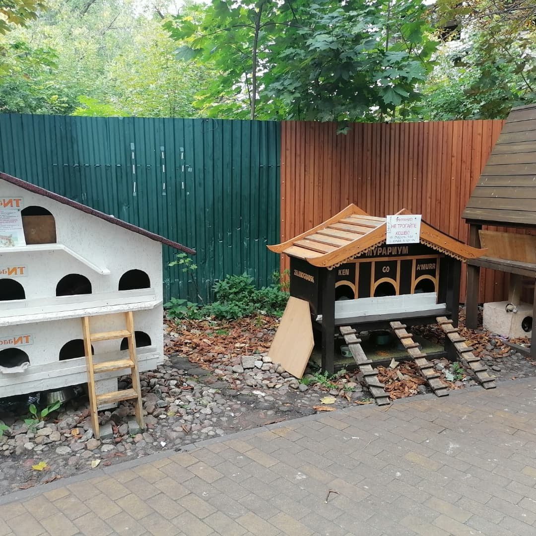 В Зеленоградске также есть гостиница для кошек. По сути, это обычный приют, вот только бродячие животные приходят сюда сами. Здесь они могут поесть, попить и переночевать. Причём кормят четвероногих вполне добротно. В меню могут, к примеру, включить свежую рыбу. Зимой в кошачьей гостинице работает отопление, поэтому живущие на улице "брошенки" могут прийти и погреться. Кроме того, на улицах устанавливают специальные домики для котов, что-то вроде кошачьего "скворечника" (кошкоречник?), где летом можно спрятаться от жары, а зимой - от холода. Они тоже, как правило, все с подогревом.