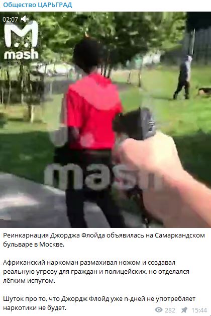 Реинкарнация Джорджа Флойда объявилась на Самаркандском бульваре в Москве. Африканский наркоман размахивал ножом и создавал реальную угрозу для граждан и полицейских, но отделался лёгким испугом,
