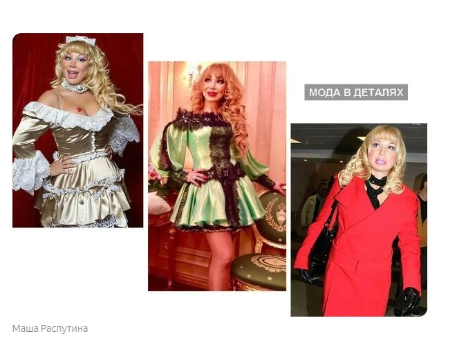 То же самое касается и известной своими образами-вамп Маши Распутиной. На сцене или в клипах обладательница зычного голоса может носить такое, что подчас просто удивляешься, как певице не стыдно надевать подобные наряды. Но в обычной жизни Распутина - вполне обыкновенная, скромная женщина.
