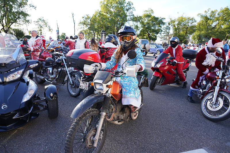 В конце декабря на главном курорте страны Деды Морозы-мотоциклисты собираются для главного заезда года.